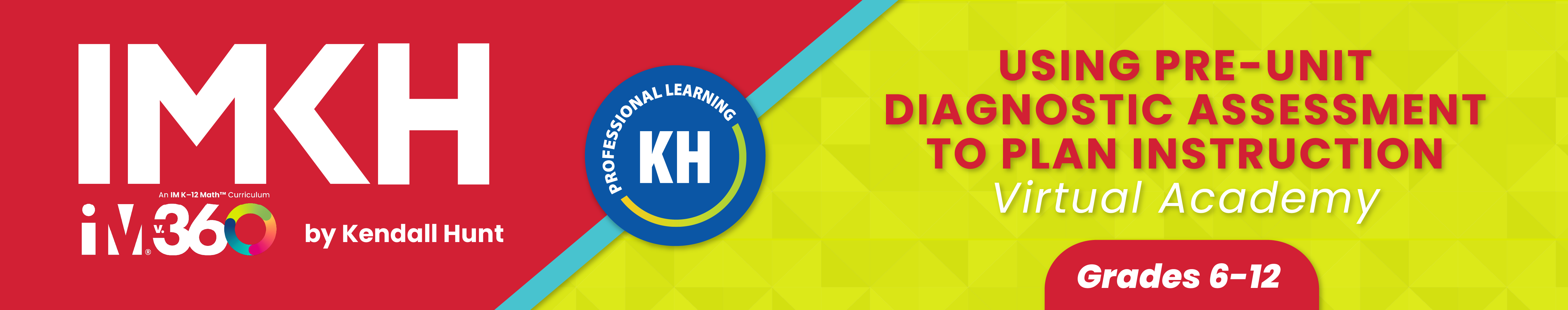 Join Kendall Hunt and Illustrative Mathematics for a special virtual professional learning opportunity designed just for grades 6–12 teachers. Led by IM-Certified® trainers, this session is perfect for educators in their second year or beyond of implementing IM 6–12 Math who are ready to take their use of pre-unit diagnostic assessments to the next level.